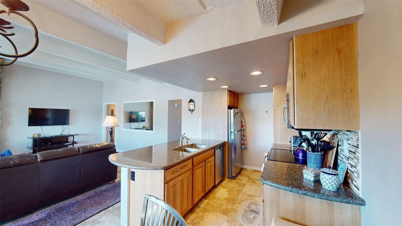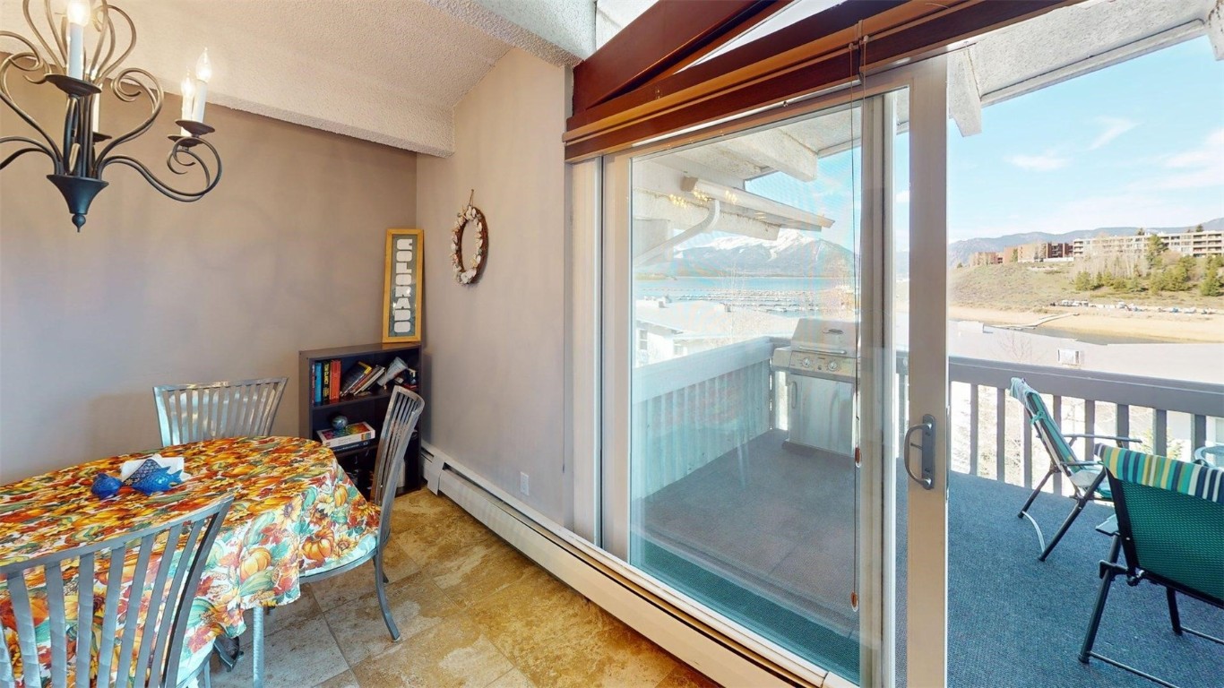 Perched on the top floor at the back of the Anchorage West complex, this delightful unit presents stunning views of Lake Dillon, the Ten Mile Range, and the Gore Range. You'll find two spacious bedrooms that are thoughtfully separated by an inviting open-plan kitchen, a dining area, and a cozy living room complete with a wood-burning fireplace and a wall of windows, perfect for soaking in the views on those chilly days. Relax on the generously sized, west-facing deck while enjoying the sight of sailboats in the summer or iceboats in the winter on Lake Dillon. There's even the chance to stroll down to the lake to indulge in kayaking, canoeing, and paddleboarding during the warm months, as well as Nordic skiing, snowshoeing, and ice skating when winter arrives. Plus, this unit has the added bonus of a covered parking spot, and there's oversized vehicle storage (based on availability and vehicle). Just three miles from Keystone Resort, and close to everything else Summit County offers!