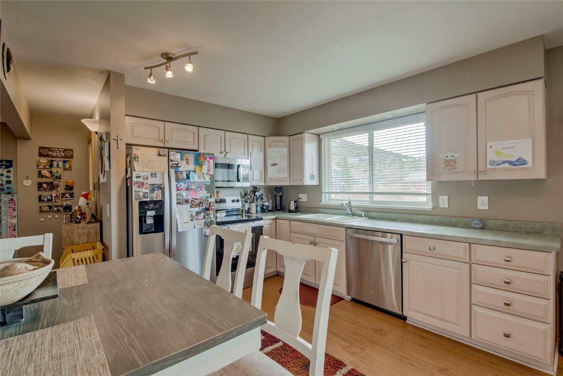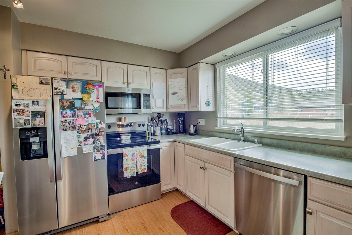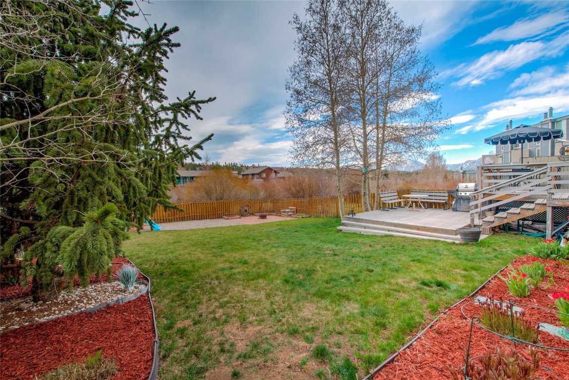 This fantastic Dillon Valley home backs to Straight Creek and offers stunning views of Peak One and Tenderfoot. Bike paths, bus stops, parks, and hiking trails are just steps away. The home includes three bedrooms and a sizable laundry room/office area, with mature low-maintenance landscaping beginning to bloom for spring, perfect for all your summer get-togethers. The upper level boasts two bedrooms with a large three-quarter bath, a well-proportioned kitchen with space for a table, and a pantry. The lower garden level has a bedroom and bath, plus a wood-burning stove to keep cozy on cold nights. This property has many great features - the exterior was updated with new siding and roof in the last five years, sprinkler/irrigated landscaping in the fenced backyard (front is disconnected), a large patio and play area, a spacious deck with amazing views; inside you will find modern kitchen appliances (all replaced within the last year), new carpet throughout, updated bathrooms, and a one-car garage. This split-level, half-duplex is ready and waiting for its next owner... will that be you?